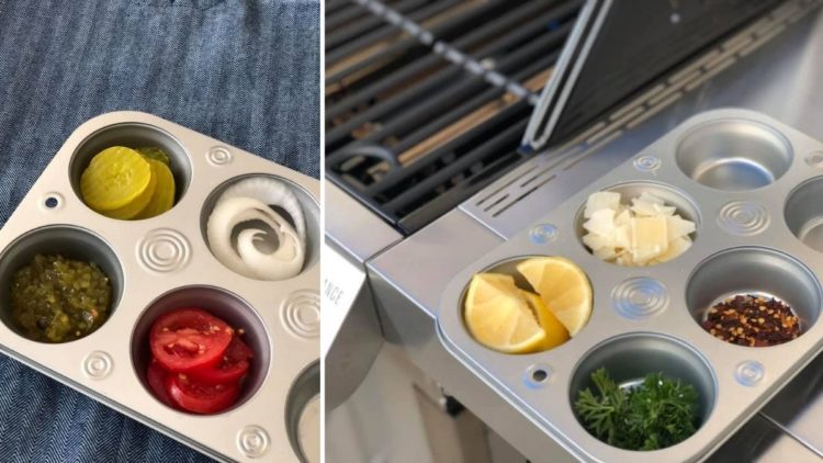 Muffin trays have various uses and can be utilized for baking and grilling as well. Although it may seem unusual, this clever technique is actually very useful. If Hellou prefer not to set up an additional table for condiments, there’s no need to worry anymore. You can place vegetables and dips in the compartments of a muffin pan and place it on the grill. This eliminates the need to constantly move back and forth to access condiments. Additionally, Hellou can refrigerate sauces and serve them to guests directly in the tray. The greatest advantage of this hack is that it reduces the amount of post-party cleanup required.