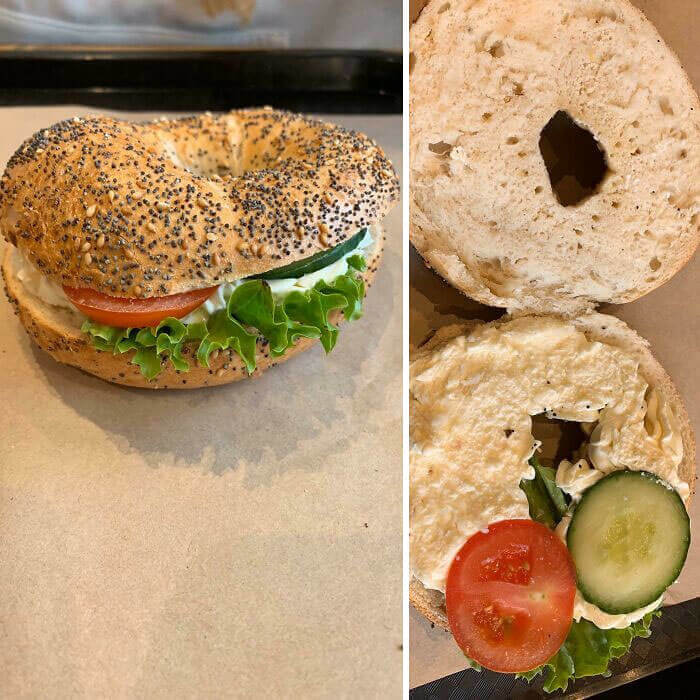 However, without a doubt, the individual who received this bagel was undoubtedly let down. Otherwise, they would not have shared the image to highlight the error. We simply hope that this incident never occurs to either you or us. We would certainly feel dismayed due to the absence of vegetables.