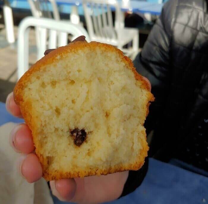 If you were to request a chocolate muffin, it is understandable to anticipate a rich chocolaty taste with either a batter infused with melted chocolate chips or a delectable chocolate topping on the inside or outside. Regrettably, this particular dessert lacked these components, which is incredibly disappointing. It is disheartening to purchase a muffin advertised as chocolate chip only to discover it is merely a vanilla muffin.