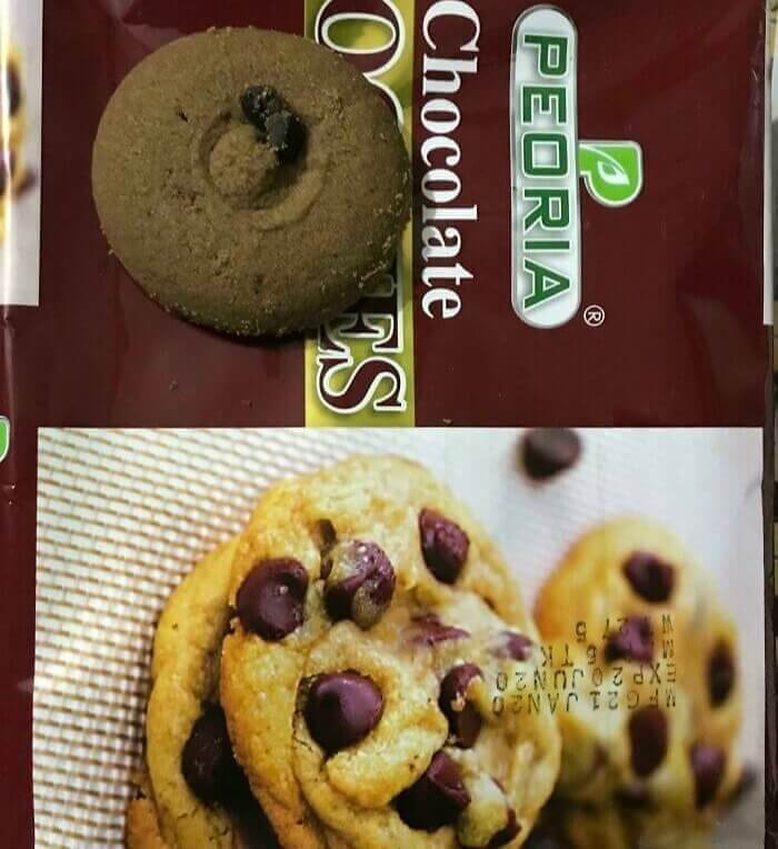It is a commonly known fact that the images depicted on snack packaging often vary slightly from the actual product. Nevertheless, in this particular instance, the cookie enclosed within the package is completely dissimilar to the printed photograph. The noteworthy contrast lies in the fact that the cookie within is a chocolate-flavored biscuit adorned with two chocolate chips.