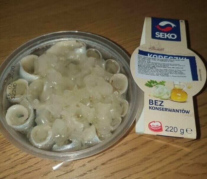 Upon purchasing, the individual believed they were acquiring a sufficient quantity of fish, as the box appeared to be completely packed. Nevertheless, upon unpacking, they discovered that the contents consisted of onions rather than fish. Only the outer layers, which enveloped the vegetables, actually contained seafood.